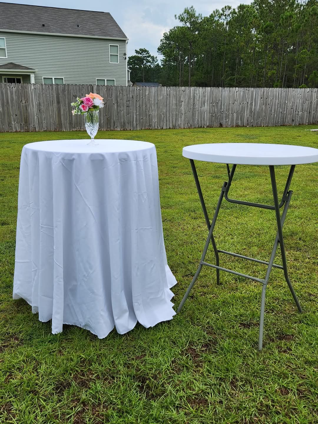 These 32" high-top tables are perfect for creating stylish standing areas at any event, encouraging guests to mingle and socialize effortlessly. They offer versatile elegance for cocktails, appetizers, or casual gatherings.